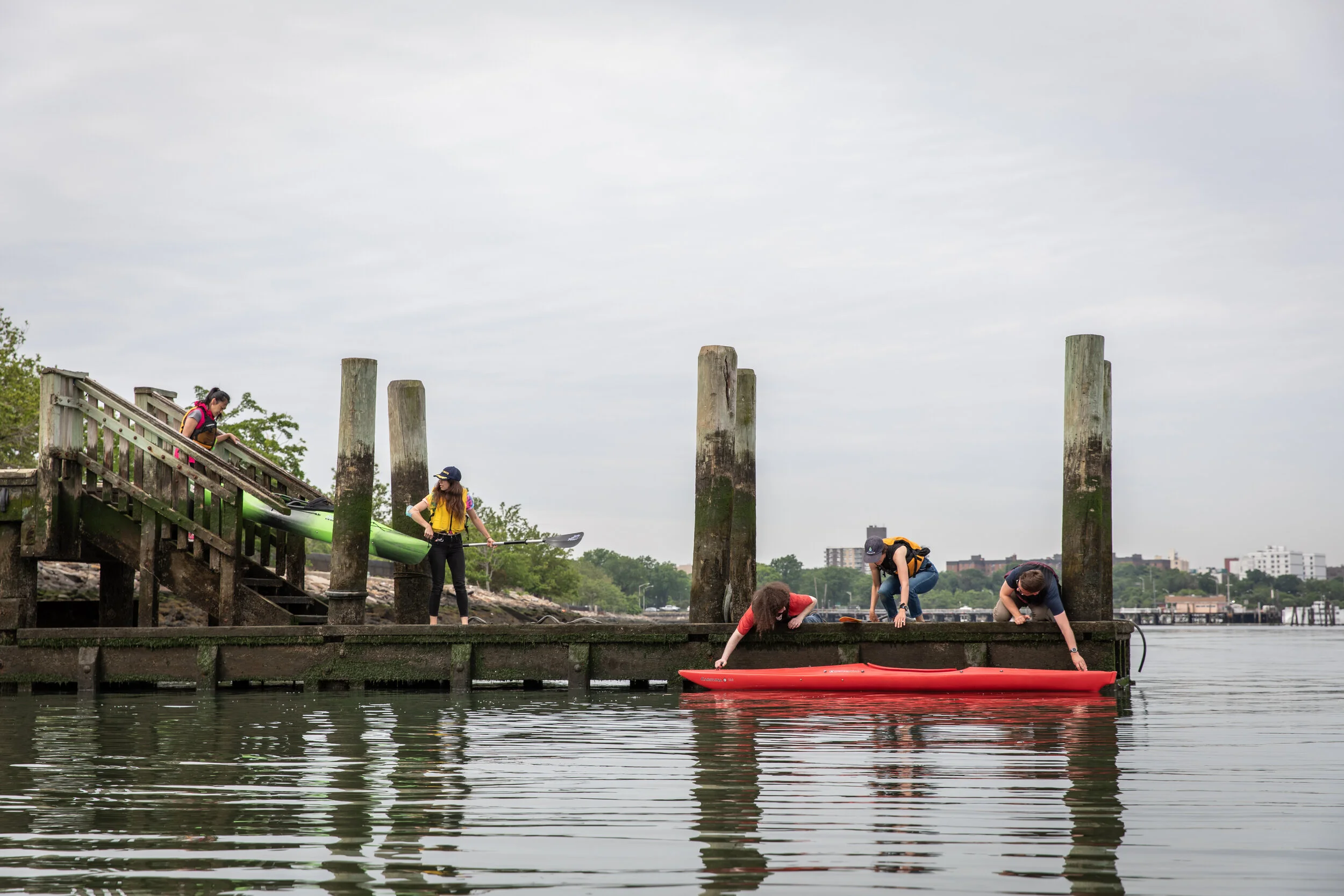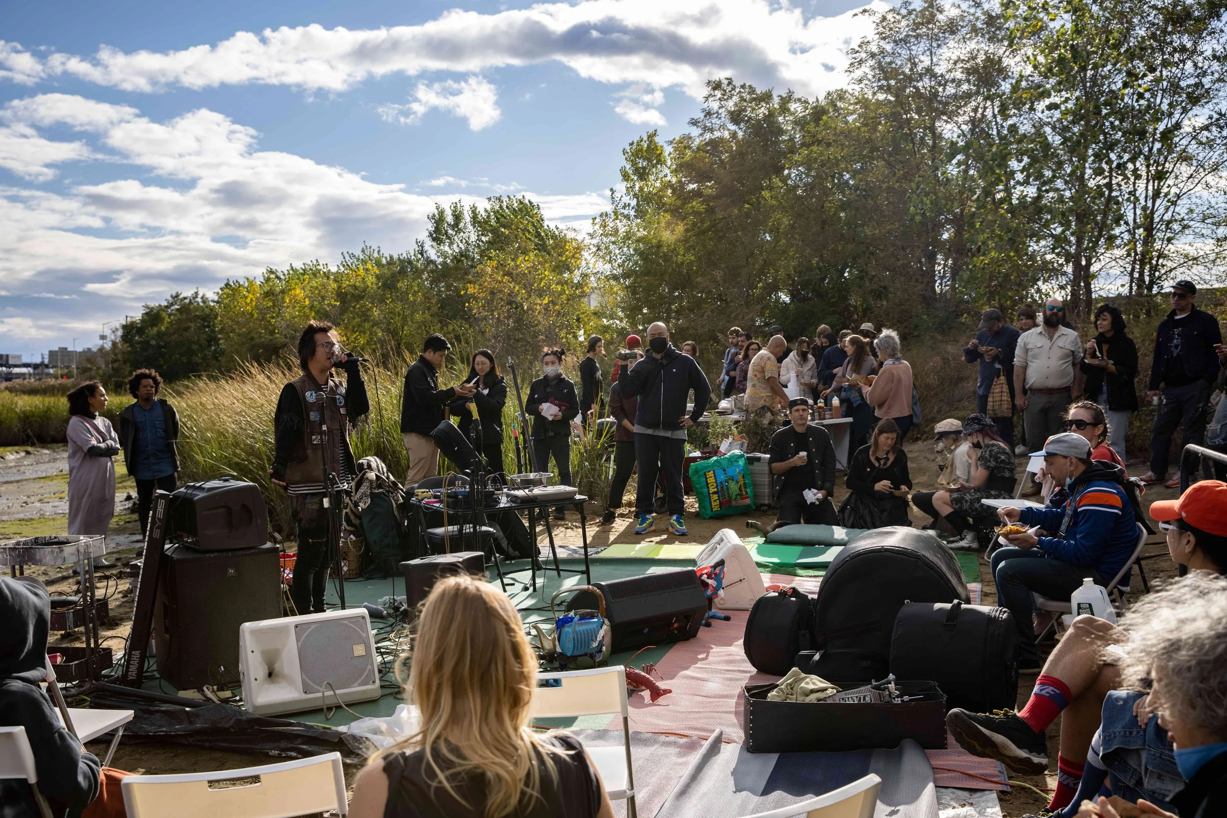 Using the Passive Recreation Platform as a dock attendees at Freak the Creek were welcomed to participate in first-come first-served paddling in the mudflat at the historic site of the Wahnetah Boat Club. Freak the Creek was a free six hour long beach day along Flushing Creek, lasting from low to high tide, with performances, live music, a guided tour, food + drink, and other recreational activities planned in collaboration with sTo Len.