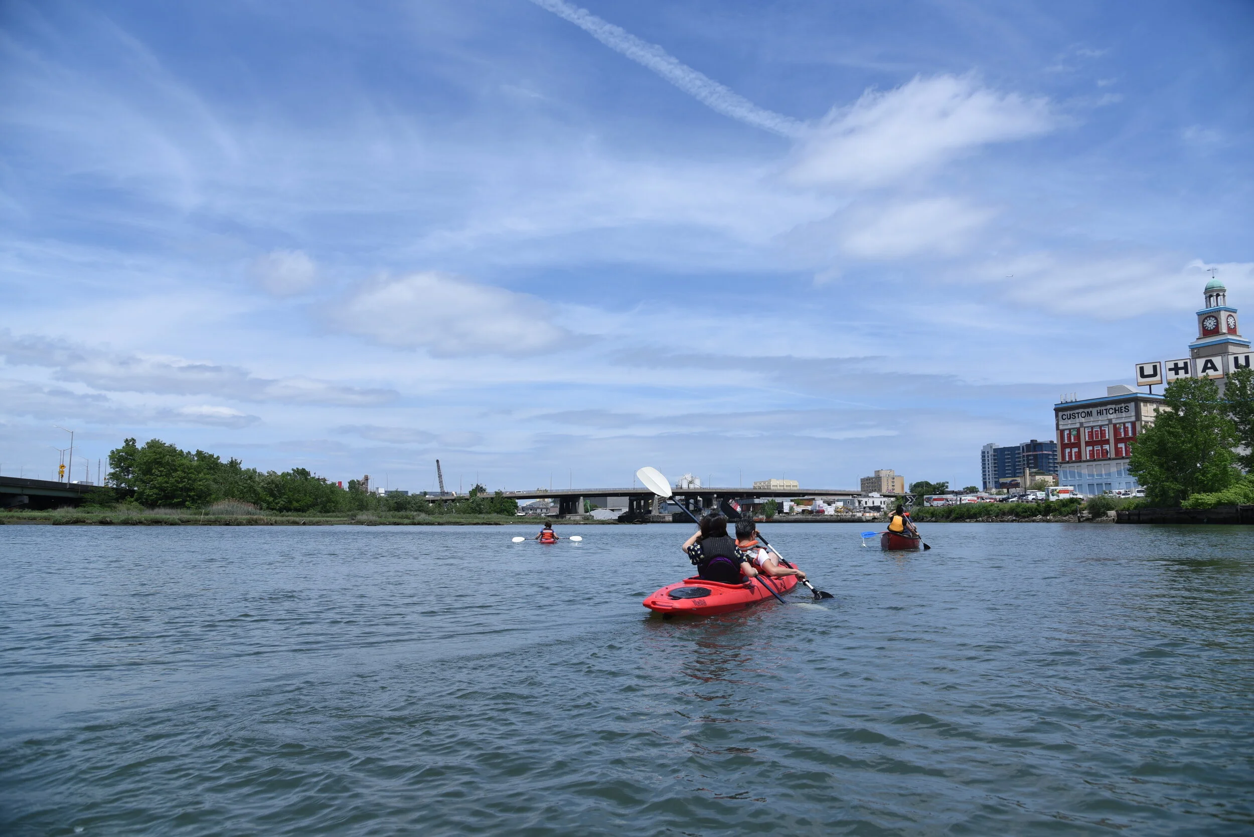 Brownfield Boating is a series of paddling tours and beach days hosted throughout 2021 in collaboration with nonprofits, artist, and civic groups with a focus on the Flushing Waterfront Brownfield Opportunity Area. Participants got to check in on oyster cages stationed along the Passive Recreation Platform, explore combined sewage overflows up close, and envision how climate change may impact the existing landscape and plans for development around the Flushing, Willets Point, East Elmhurst, and College Point waterfronts in the future. Rented U-Haul trucks served as a transient boathouse throughout the year, transporting a fleet of kayaks and canoes able to accommodate up to 13 people at once. This series of projects allowed for 60+ people to paddle on Flushing Creek. Each event operated with a different invitation/RSVP format, testing multiple methods of engaging area residents and stakeholders with on-water activity.