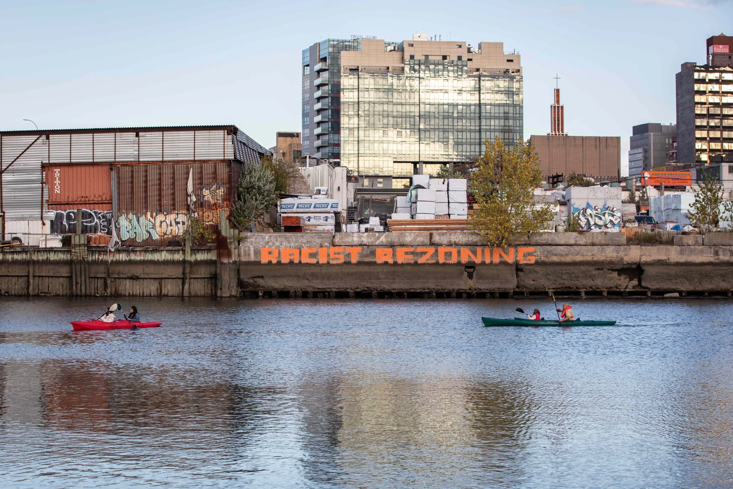 As part of Tending the Edge, presented by Works on Water, Culture Push, and NYC Department of City Planning, the first iteration of Brownfield Boating invited 2021 NYC Mayoral candidates, Queens Borough President candidates, City Council District 20 candidates, and City Council District 21 candidates to attend guided on-water tours in Flushing Creek launching from the Flushing Meadows - Corona Park Kayak and Canoe Launch. Tours were led in collaboration with Guardians of Flushing Bay, and select community members living and working in the area including members of Flushing Anti-Displacement Alliance, were invited to paddle alongside candidates. Artist group Sunk Shore made a guest appearance during the tours, offering a site-specific speculative take on our climate changed future.